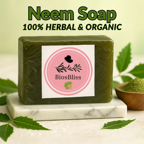 Discover the natural power of BiosBliss Neem Soap, specially crafted for those who want clear, healthy, and glowing skin without harsh chemicals. Made with 100% organic neem extracts, this handmade herbal soap gently cleanses your skin while fighting acne, pimples, and excess oil.