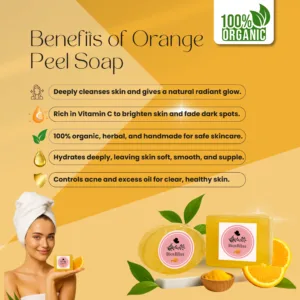 Unlike chemical soaps, BiosBliss Orange Peel Soap is free from parabens and sulfates, ensuring your skin gets only pure and safe care. With regular use, it leaves your skin clear, smooth, and radiant – perfect for both men and women.